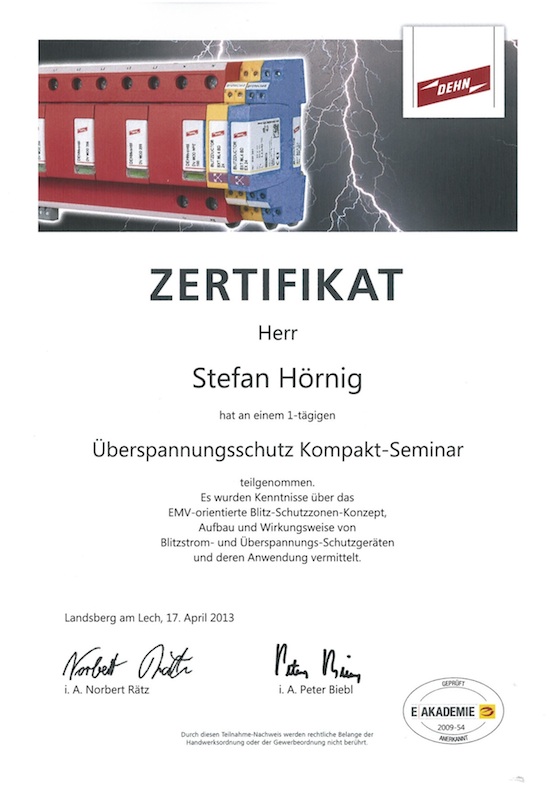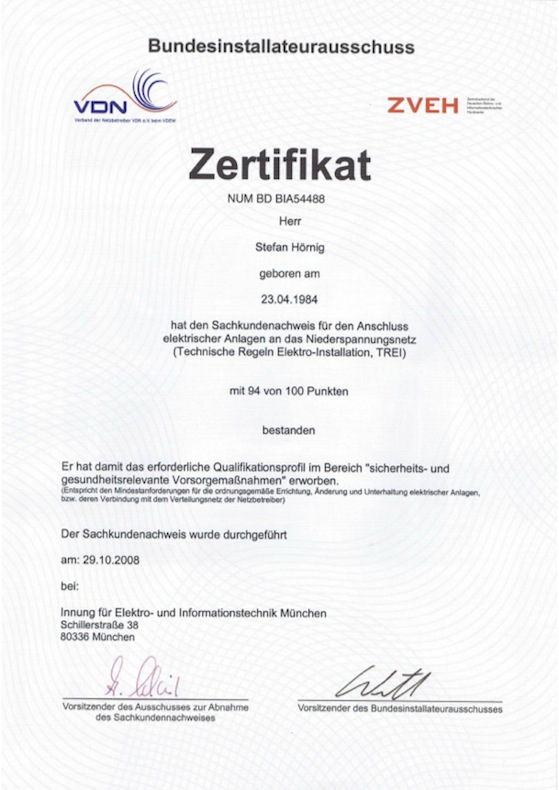 Mein Name ist Stefan Hörnig und ich helfe Ihnen gerne bei der Beratung, Planung und Umsetzung Ihrer Elektroinstallationen! Seit meinem erfolgreichem Abschluss der Meisterprüfung in 2008 arbeite ich als selbständiger Elektroinstallateur - seit 2014 in der Rechtsform einer GmbH. Spezialisiert habe ich mich hierbei besonders auf die Bereiche "erneuerbare Energien" und "Photovoltaik". Die Arbeitsbeispiele unter Referenzen zeigen einen Ausschnitt meiner gesammelten Erfahrungswerte.